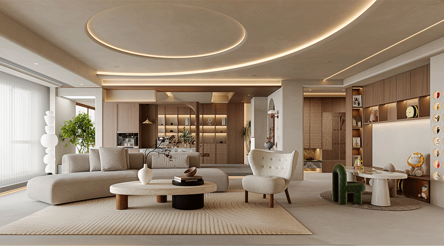奶油風設(shè)計強調(diào)的是色彩的柔和與細膩,整體色調(diào)以淡雅的暖色調(diào)為主,配合輕柔的色彩過渡,給人一種舒適與放松的視覺感受。設(shè)計元素包括但不限于軟裝飾、墻面處理、燈光設(shè)計等,力求打造出一種細膩而浪漫的空間氛圍。
